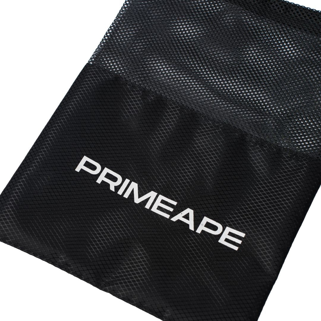 Keep all your Prime Ape gear in one place with our durable mesh bag. Designed with drawstrings for easy closure, it’s perfect for storing straps, hooks, and other essentials so nothing gets lost in your gym bag.